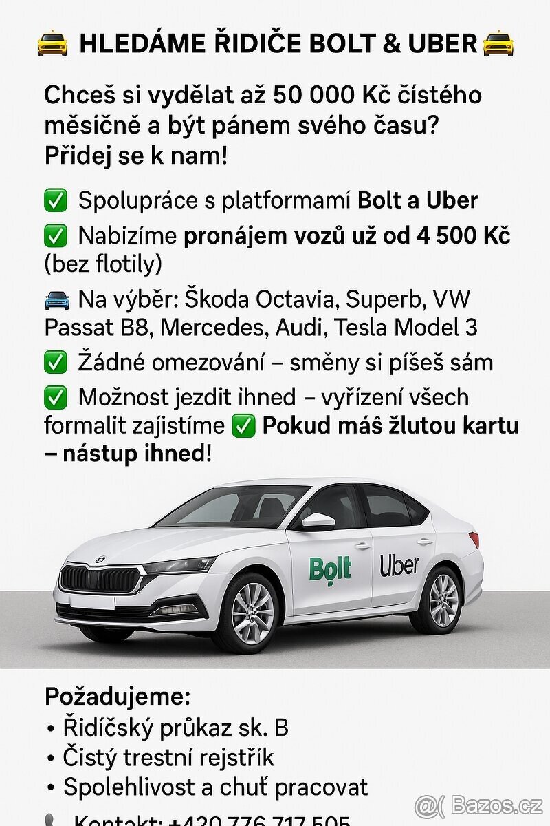 🚖 Hledáme řidiče Bolt & Uber 🚖