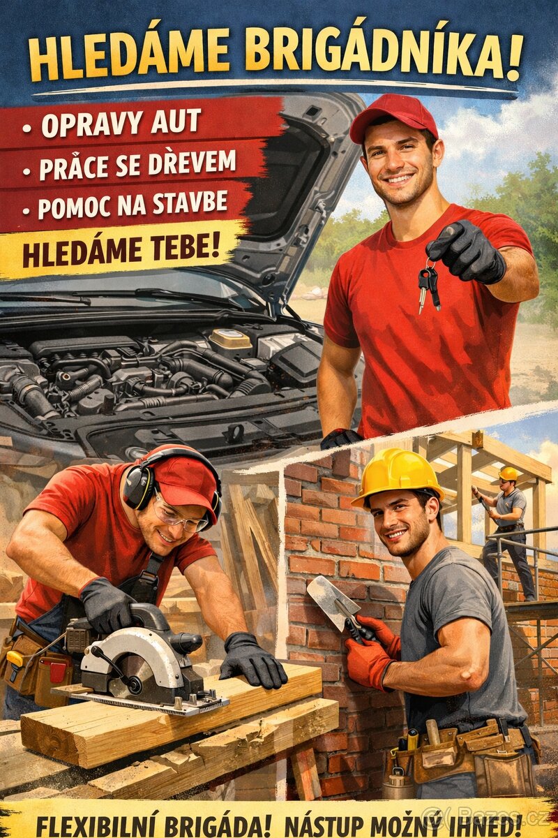 Jsi šikovný? Umíš vyměnit olej a destičky na autě? Uříznout palubku,přišroubovat ji a zároveň do toho poznáš kde má vodováha bublinku? Umíš taky třeba namíchat beton? Dá se na tebe spolehnout a jsi schopný samostatné práce? Tak hledám právě tebe!!