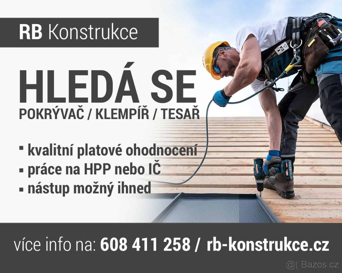 👉 Umíš dělat klempířinu nebo pokrývačské práce? Ať už jsi profík nebo šikovný chlap s praxí, ozvi se nám!